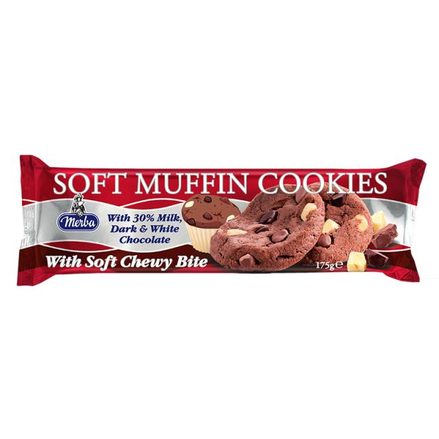 Мерба меки бисквити Мъфин с тъмен, млечен и бял шоколад (30%) 175 гр 175 гр