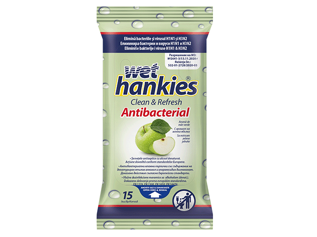 МОКРИ КЪРПИ ХАНКИЕС АНТИБАКТЕРИАЛНИ ЗЕЛЕНА ЯБЪЛКА 15БР 100 гр