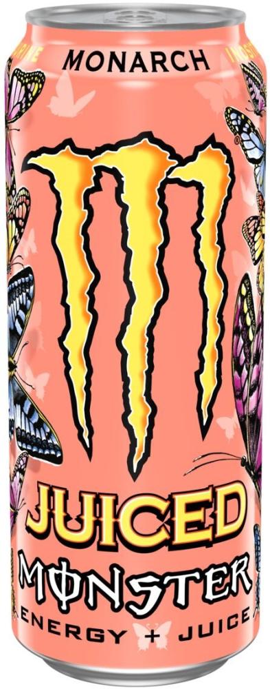 Monster Monarch е енергийна напитка с лек, деликатен аромат и нотки на праскова и нектарина.Тя е с подсладители, съдържаща таурин, L-карнитин, кофеин, женшен и витамини от група B. Витамините B2, B3, B6 и B12 могат да допринасят за намаляване на умората и изтощението, като в същото време подобряват метаболизма.Високо съдържание на кофеин. Не се препоръчва за деца, бременни жени или кърмачки, както и за хора, които са чувствителни към кофеин. Да не се консумира с алкохол.
