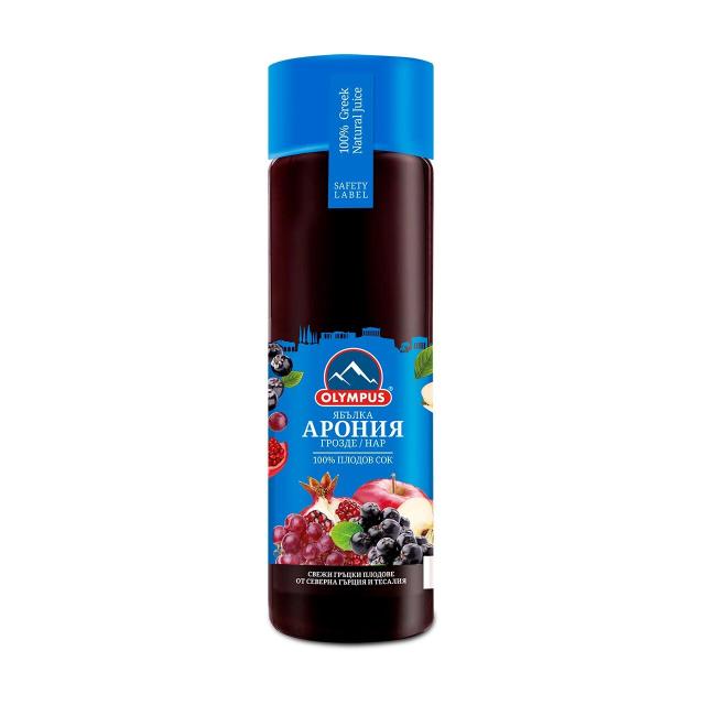 Съставки: концентриран плодов сок от ябълка 53%, арония 20%, грозде 15.2% и нар 11.5%