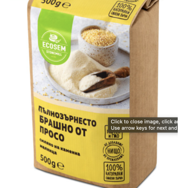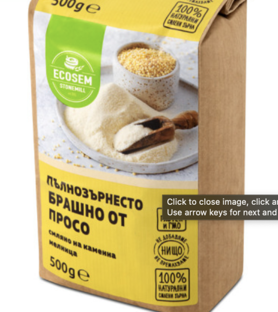 НАТУРАЛНО ПЪЛНОЗЪРНЕСТО БРАШНО ОТ ПРОСО 0,5 кг