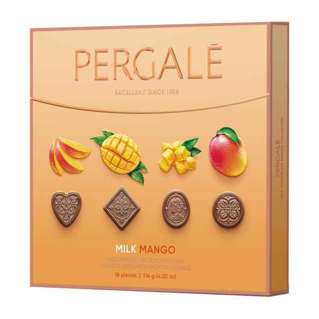 PERGALĖ МАНГО БОНБОНИ АСОРТИ С МЛЕЧЕН ШОКОЛАД 114Г 114 гр