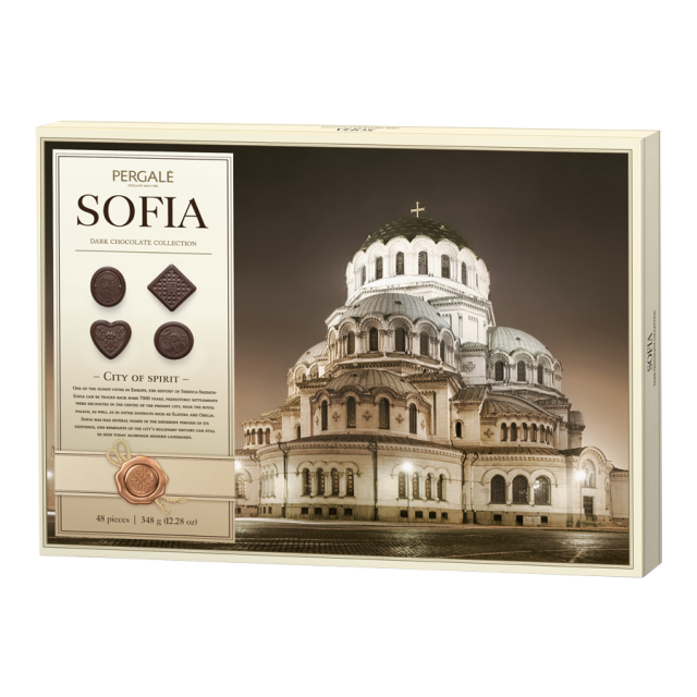 PERGALĖ СОФИЯ БОНБОНИ АСОРТИ С ТЪМЕН ШОКОЛАД 348Г 348 гр