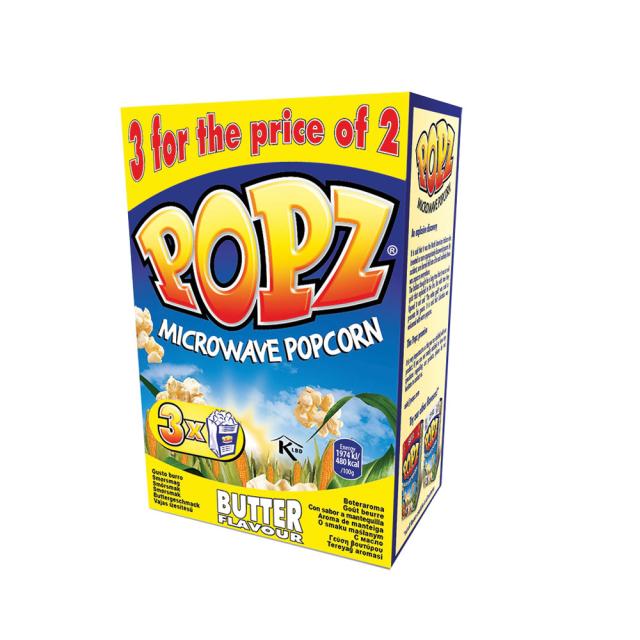 Попс – от създателя на пуканките за микровълнова фурна. Направени от специално селектиран сорт царевица, отглеждана в Унгария. Без ГМО, изкуствени съставки или транс-мазнини. Без глутен.