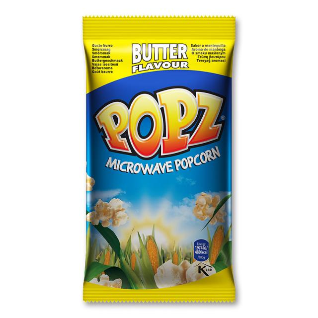 Попс – от създателя на пуканките за микровълнова фурна. Направени от специално селектиран сорт царевица, отглеждана в Унгария. Без ГМО, изкуствени съставки или транс-мазнини. Без глутен.