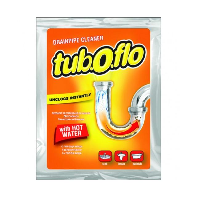 Tuboflo препарат за отпушване на канали, с гореща вода.