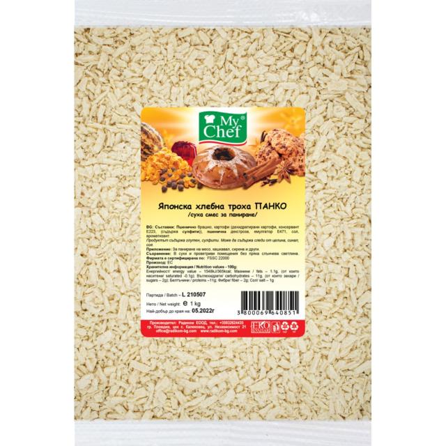 Приложение: Японска хлебна троха Панко се използва за получаване на по-фина и хрупкава текстура на панирания продукт. Има въздушна структура, което спомага да не абсорбира олио при пърженето, като така се получава по-леко и по-здравословно покритие.
