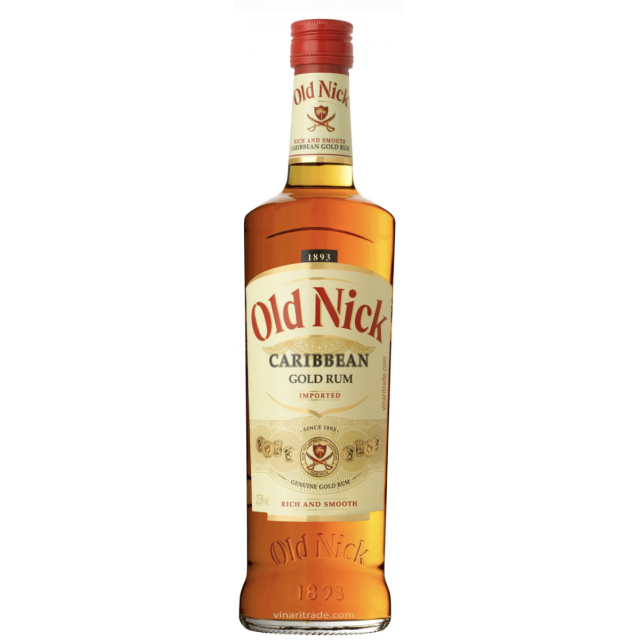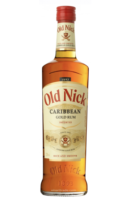 Old Nick Caribbean Gold Rum Ром "Old Nick" Gold e създаден от първокласни дестилати, произведени на Карибите. На горещи тропически острови се отглежда захарна трьстика, от която се прави меласа. Дестилира се в колони с непрекъснат цикъл, в резултат на което се получава ароматен алкохол, отлежал в дъбови бъчви. Зреенето влияе благоприятно на вкуса на ром "Old Nick", придобивайки мекота и закръгленост. Caribbean Golden Rum ce произвежда от най-добрата захарна трьстика в съответствие с традиционните методи, които се използват от 1893 г. Златистият му цвят се дължи на дъягия престой в бъчви. Цвят: Златист. Аромат: Изпълнен с нотки на банан, ванилия и канела. Вкус: Заоблен, мек, с нотки на цитрусови и тропически плодове и дрвесни нюанси. Алк.: 37.5%.