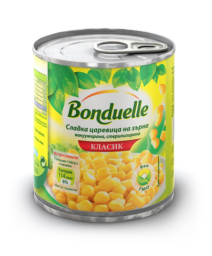 СЛАДКА ЦАРЕВИЦА НА ЗЪРНА (В РАЗФАСОВКИ ОТ 850 МЛ) Еликсир на младостта 100 г царевица – 97 kcal Съдържа значителни количества въглехидрати, баластни вещества, белтъчини, много витамини от групата B, витамин E, калий, фосфор, магнезий, желязо, цинк. Магнезият, който присъства в големи количества в царевицата, идеално възстановява недостига на този елемент, съпровождащ много от болестите, свързани със стареенето на организма.
