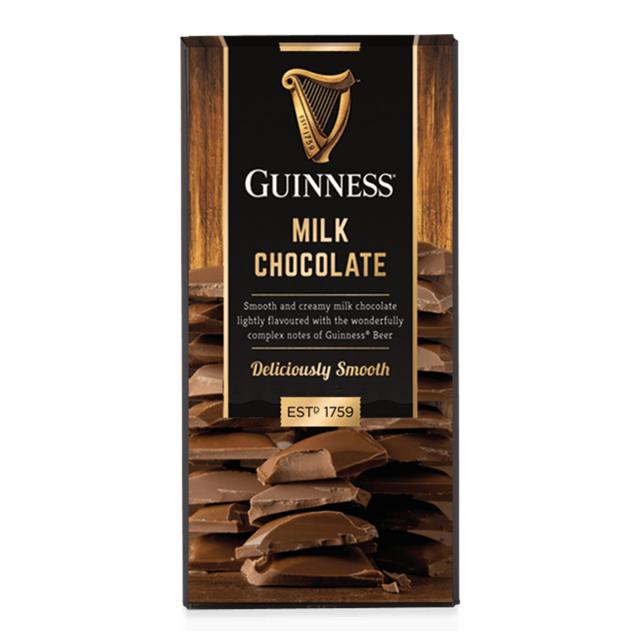 Млечен шоколад с Guinness – 90гр. Съставки: захар, какаово масло, сухо пълномаслено МЛЯКО, какаова маса, МАСЛО (МЛЯКО), ароматизатори, Guinness (ЕЧЕМИК, ГЛУТЕН), емулгатор (СОЕВ лецитин). Състав на млечния шоколад: минимално съдържание на какао 31%, минимално съдържание на мляко 23%. Може да има следи от ядки. Този продукт съдържа алкохол < 1%. Не е подходящ за деца. Да се съхранява на сухо и хладно място.