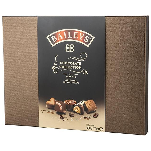 Baileys Collection 490g Мечтаната комбинация от шоколад и ликьор намира своето съвършенство в тази голяма пралинова кутия, пълна с шоколад Baileys! Елегантната кутия Baileys Collection съдържа пралина от черен и бял шоколад, както и млечен шоколад, овкусен с ликьор, брауни и кафе. Идеалният подарък за възрастни любители на шоколада, когато малко лукс е задължителен! В елегантната кутия ще намерите пралина от черен и бял шоколад, както и млечен шоколад със сърцевина от брауни, карамел и кафе. И оригиналния ирландски крем ликьор на Бейли, разбира се! Шоколадът и ликьорът са истинска двойка мечта, деликатният аромат на крем ликьора придава на шоколада нотка на лукс. Голямата шоколадова кутия Baileys Collection е разкошна закуска за възрастни, точно за Коледа и други случаи, когато малко повече лукс е задължителен! Не забравяйте да разгледате другите ни продукти на Baileys! Характеристики на продукта пралина Baileys Chocolate Collection (490 g).Насладете се на мечтаната комбинация от шоколад и ликьор с нашата огромна кутия за шоколади Baileys, която заобикаля докосване на лукс!Шоколадови пралина, направени от черен и бял шоколад, както и от млечен шоколад, овкусени, наред с други неща, с ликьор Baileys, кафе и брауни - идеални за възрастни, които обичат шоколад!Марка: Baileys Chocolate CollectionНето тегло: 490 грамаРазмери на опаковката: 30 x 39 x 4,5 смСъдържа по-малко от 1% алкохол, не е подходящ за децаСъдържа мляко, пшенично брашно, бадеми и соя, може да съдържа следи от ядки.