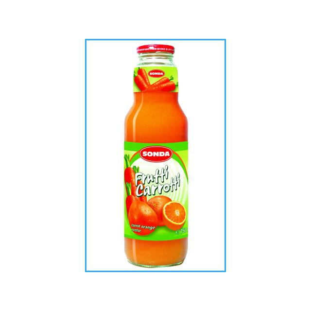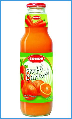 Sonda са единствените двукомпонентни сокове на морковена основа в стъклена бутилка! Съдържат само морковен сок и втори плод – за разлика от повечето конкуренти, които за основа ползват морков и ябълка и eдва след това трети плод.