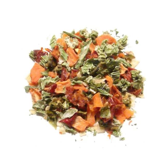 Съставки: Лук, моркови, червена чушка, праз лук, магданоз, целина.