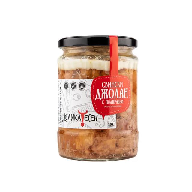 Варено месо в буркан. Съдържа свински джолан и подправки, стерилизиран по традиционна рецепта със сол. 100% месо! Готово за употреба, но може да се доготви с най-разнообразни продукти в най-разнообразни рецепти.
