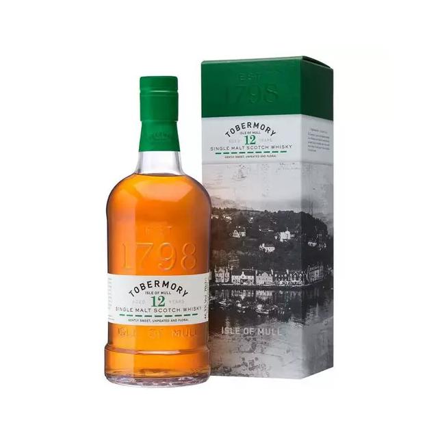 Tobermory 12 Year Old Single Malt Island Scotch Whisky 12-годишният Тобермори е най-истинският израз на хибридските острови. Използва се най-добрия необелен ечемик, вода от собствен частен източник и изпитани методи, които позволяват да се покаже същността на нашия дом на остров Мъл. Този сингъл малц отлежава в американски дъбови бъчви в продължение на 12 години. Тобермори12 има цветна палитра от живи плодове и подправки с фина соленост. Цвят: Кехлибарено златист. Аромат: Богати плодови, портокалови и цитрусови нотки, свежи флорални нотки и богат дъб с ванилия. Вкус: Сладък портокал и цитрусови плодове, кремообразен карамел и богата ванилия с пикантни нотки на канела и карамфил. Завършек: Дълъг и продължителен на ванилия и подправки.