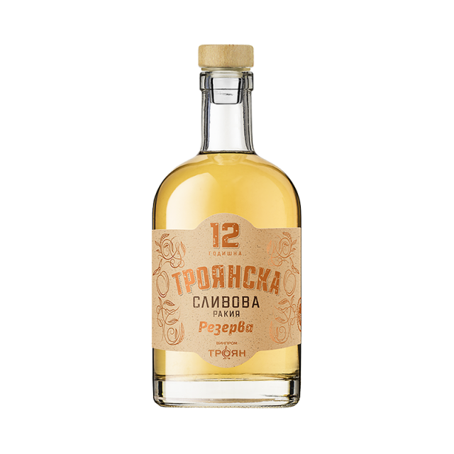 ОПИСАНИЕ 12 годишната Троянска сливова ракия Резерва е резултат от ювелирната работа на нашите технолози, специален подбор на ракии от избрани дъбови бъчви и тяхното купажиране в един неповторим бленд. Благодарение на запазените традиционни производствени процеси ракията притежава приятен мек вкус и се отличава с характерен златист цвят и мек аромат. Този продукт ще задоволи и най-взискателните консуматори на сливова ракия.