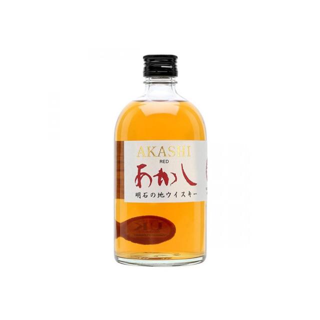 Японско уиски Акаши Ред 500ml 40% Леко и плодово уиски. С цвят на месингово злато, притежава приятен баланс на плодов малц, ванилия и сладки зърнени нотки. Изненадващо ароматено, със средно плътно, закръглено, еластично усещане за уста и деликатни аромати на сушени плодове /овощни градини/.
