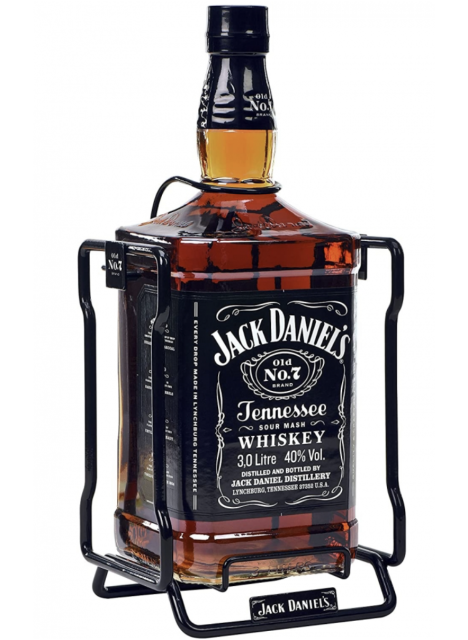 Jack Daniels 3 litre Swing Cradle Gift Set Jack Daniel's Old No. 7 е меко уиски произвеждано от Jack Daniel Distillery в Lynchburg, Tennessee. Името му идва от основателя на дестилерията, самият Mr. Jack Daniel, който започва дейността си през 1866 г. Уиски Jack Daniel's e произведено от зърнена каша с 80% царевица, 12% рыж и 8% малц. Класическото висококачествено Тенеси уиски, притежава характеристики, които го доближават до бъроьна, но фактьт, че не е произведен в щата Кентьки и отличителните му особености го поставят в една самостоятелна категория. Jack Daniel's Tennessee Whiskey, /Джак Даниелс Тенеси Уиски/се филтрира капка по капка, през триметров пласт дървени вълища от сладк клен преди да отлежи. Процесьт отнема до 10 дни и през това време уискито абсорбира есенцията на въглените, които му придават онзи специфичен аромат и вкус, характерен единствено за Tennessee Whiskey. Jack Daniel's e марка известна с характерните бутилки с квадратно дно и черен етикет. Аромат: Лек, балансиран, с изобилстваща сладост и нотки на сухи подправки, ядки и доловима опушеност. Вкус: Балансиран, леко дъбов, с карамелени нотки. Послевкус: Сладък, зърнен, с дъбова опушеност. Алк.: 40 %.