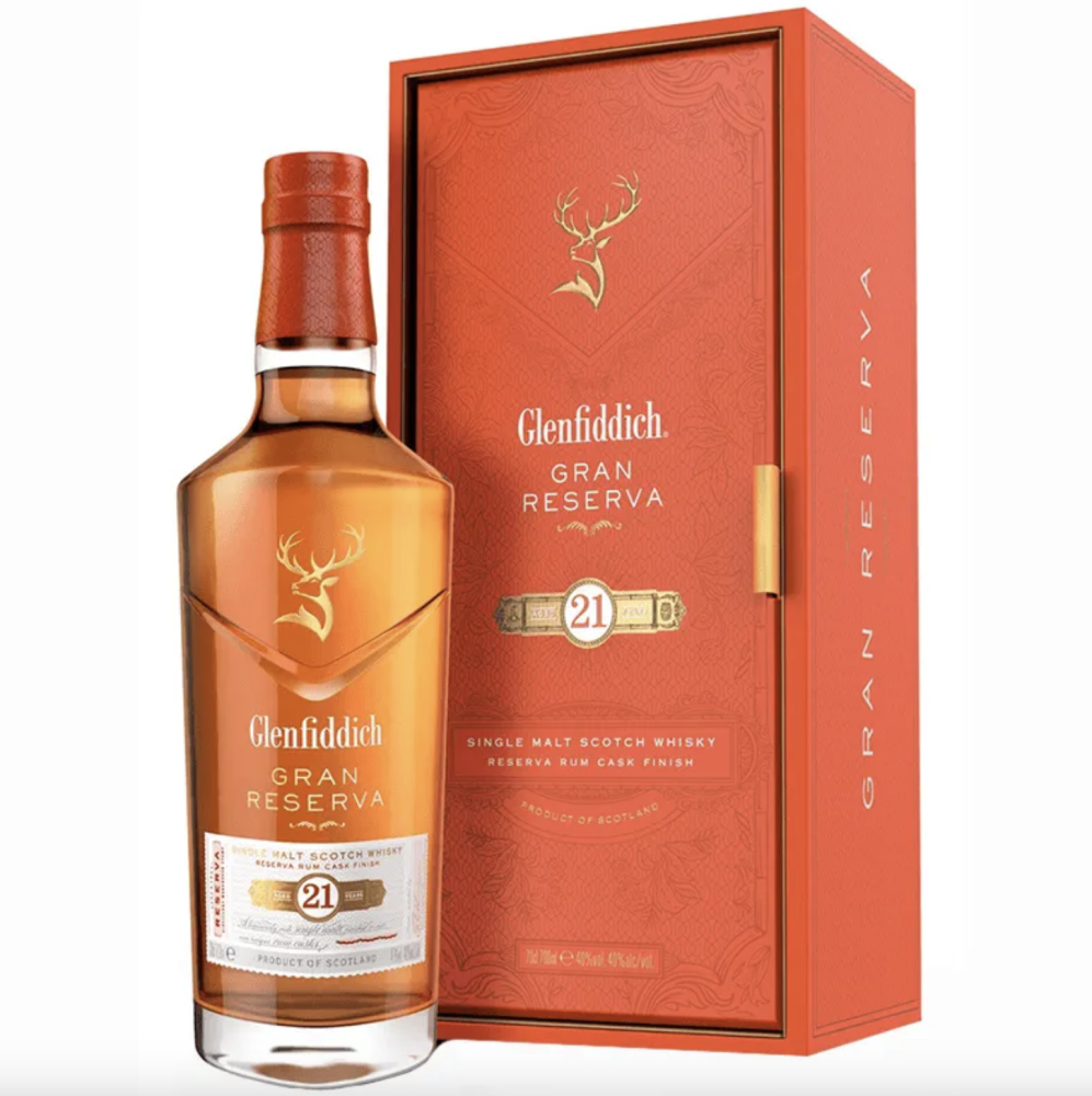 Glenfiddich Gran Reserva 21 е наследникът на Glenfiddich 21 YO – един неочакван сблъсък на Шотландия с Карибите, подчертаващ пионерския дух на дестилерията. За да улови есенцията, нашият Мастър Блендер, Браян Кинсман не ползва просто бъчви от ром, а създава специален бленд от Карибски ром, за да овкуси бъчвите, а те да придадат перфектен баланс и жизненост на уискито. След 21 години отлежаване в студения и спокоен Спейсайд, бъчвите от ром награждават уискито със страстта на Карибите. ВКУС: Glenfiddich Gran Reserva има интензивна сладост, ванилия в комбинация с плодови нотки и банан, усещащи се и на мирис. В допълнение е намек за пиперливост и сушена смокиня. Цялото вкусово удоволствие завършва с нотки на сладък карамел. ПРЕПОРЪКА ЗА СЕРВИРАНЕ: Богато и меко, Glenfiddich Gran Reserva може да се консумира чисто или с малко вода. За комбинации с храна препоръчваме: крем брюле - ястия приготвени с ром Съдържание на алкохол: 40%
