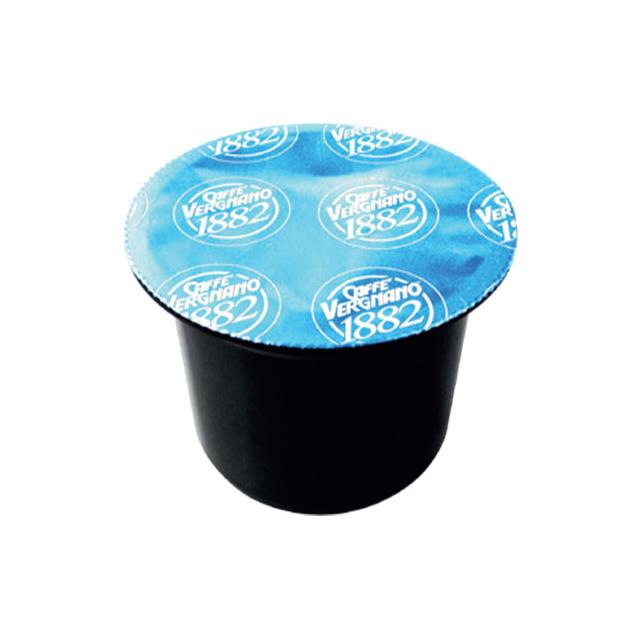 Decaffeinato е смес с богат и ароматен вкус на Робуста, балансирана с най-добрите зърна Арабика от Централна и Южна Америка. Блендът е подходящо декофеинизиран и след това бавно изпечен. Пяната в чашата е равномерна и плътна, с кафяви отражения. Опаковката съдържа 100 безкофеинови капсули Caffè Vergnano 1882 за система Lavazza Blue.