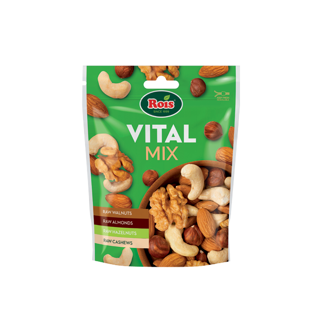 Съставки: сурови бадеми, кашу, лешници и орехи. Опаковано в защитна атмосфера- азот. Може да съдържа следи от други ядки и фъстъци. Може да съдържа части от черупки.