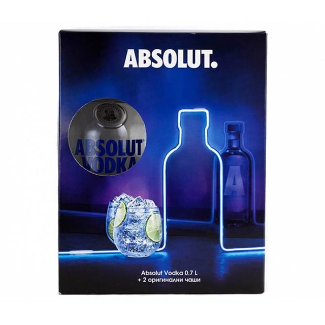 Висококачествена шведска водка Absolut в комплект с 2 чаши 700ml.