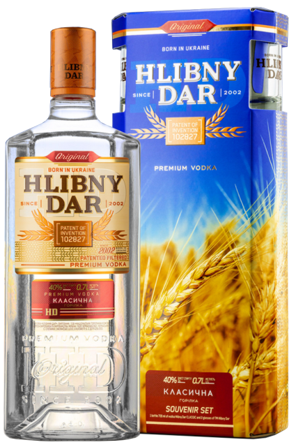 Украинска Водка Хлебний Дар Класик 0.7л. с 2 Шот Чаши 700 мл