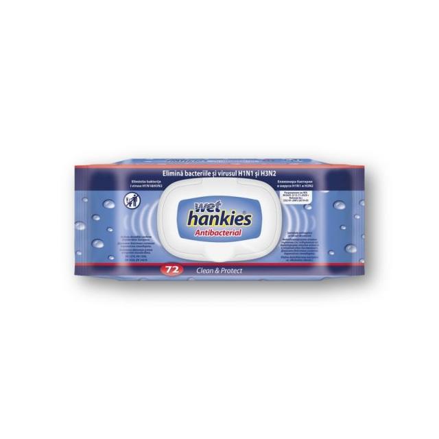 WET HANKIES CLEAN Антибактериални мокри кърпички за ръце, 72 бр. 500 гр