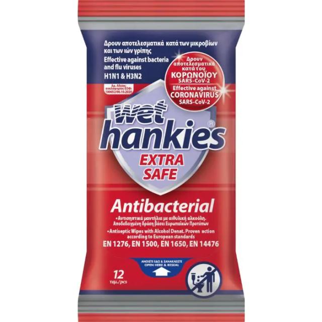 Wet Hankies Extra Safe Антибактериални мокри кърпи х12 бр 100 гр