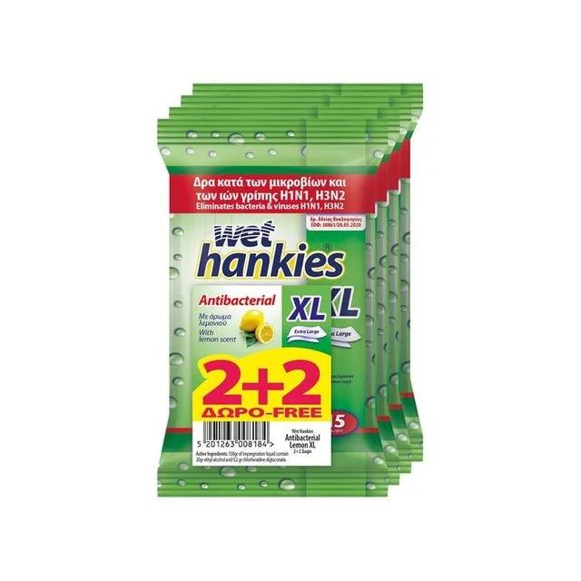 Wet Hankies XL Антибактериални мокри кърпи с аромат на лимон 2 + 2 x15 броя 300 гр