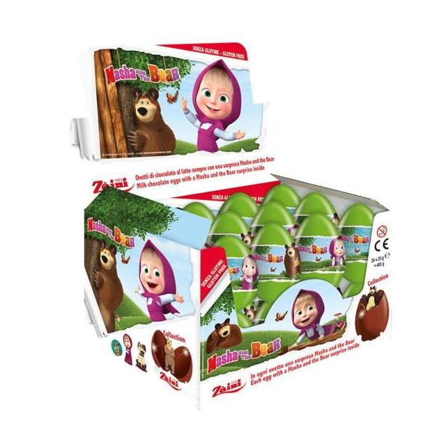 12бр. ZAINI ШОКОЛАДОВО ЯЙЦЕ МАША И МЕЧОКЪТ 240 гр