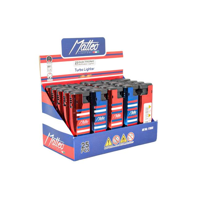 ЗАПАЛКА МАТЕО 173032 TURBO METAL CASE RED BLUE LINES 25БР. 250 гр