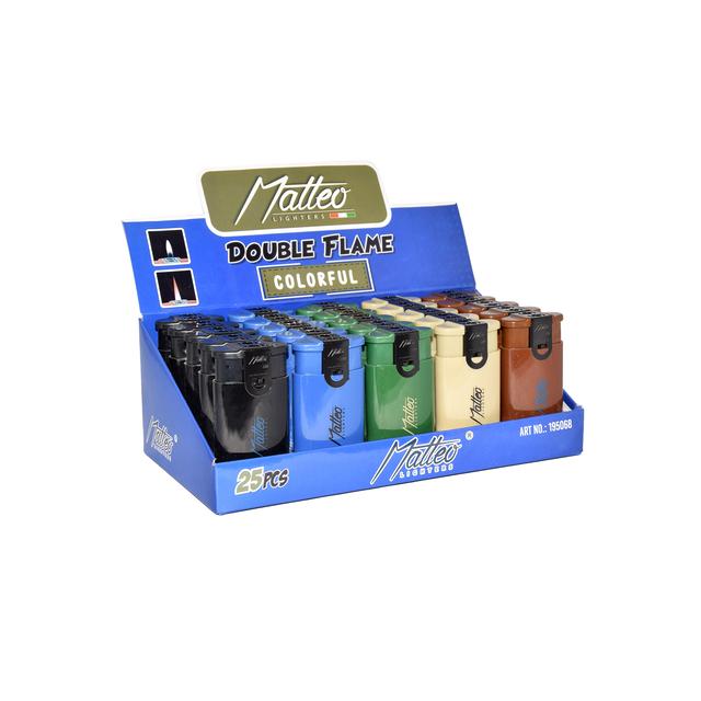 ЗАПАЛКА МАТЕО 195068 DOUBLE FLAME SOLID COLORS 25БР. 500 гр