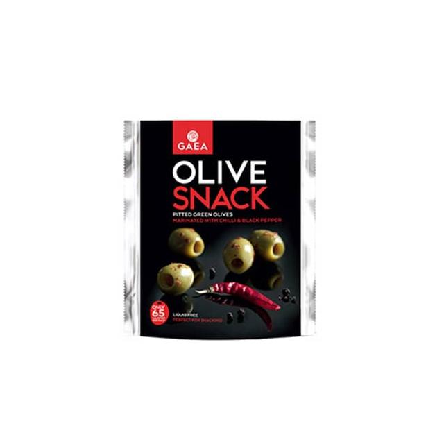 Зелени маслини без костилка с форма на бадем, мариновани с чили и черен пипер, със 100% натурален автентичен гръцки вкус. Перфектни за салати, поднесени като мезе хапки или лека закуска. Пакетирани в защитена атмосфера, в иновативна опаковка за многократно отваряне и затваряне, която поддържа свежи маслините и техния аромат. Без консерванти или добавки, само с естествени съставки.