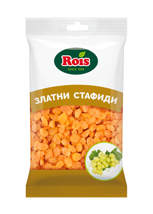 Съставки: стафиди, слънчогледово масло. Може да съдържа следи от ядки и фъстъци. Може да съдържа дръжки от грозде.